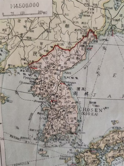 (上图)1946年中华民国地图上只有韩国名称。