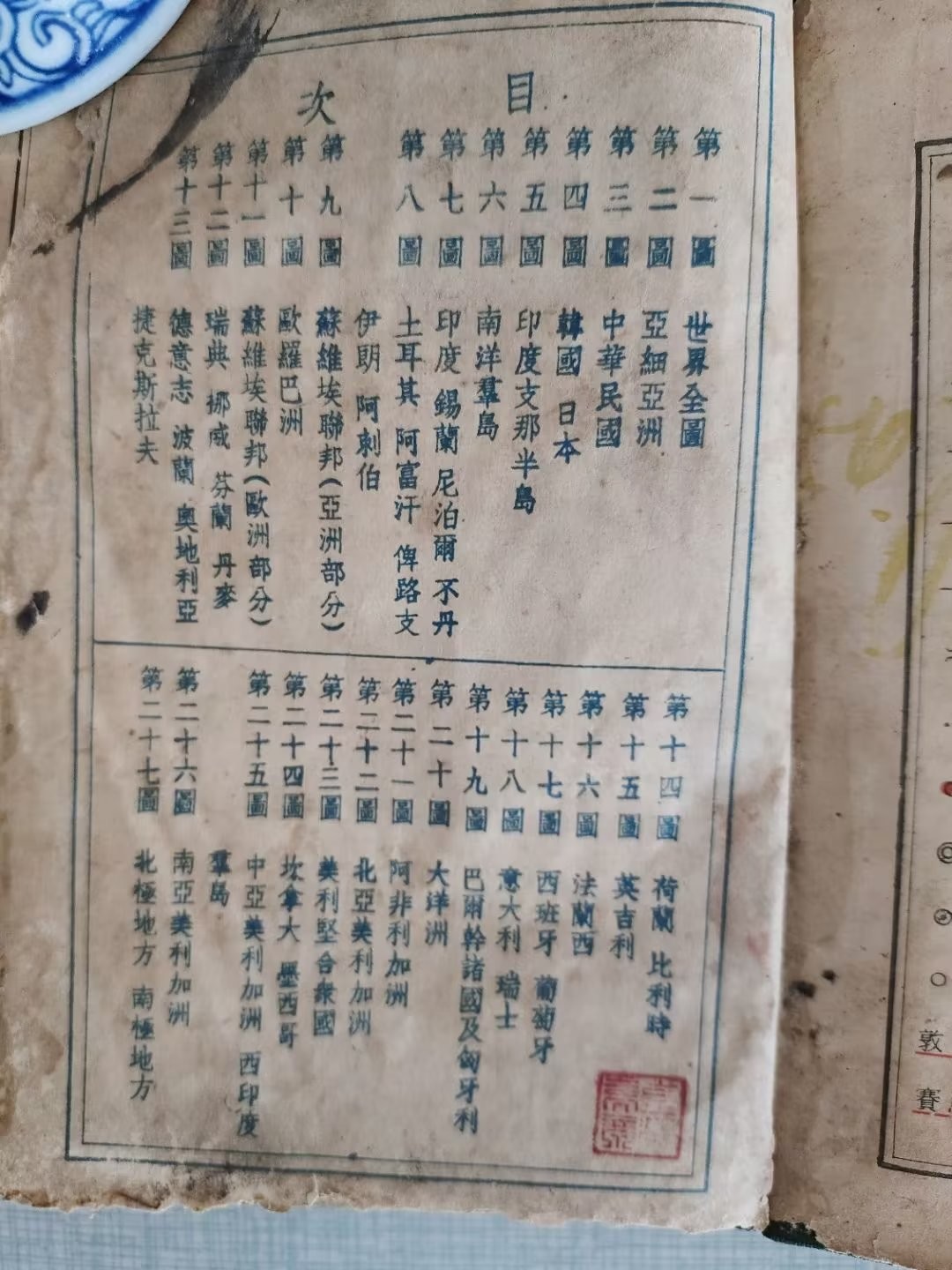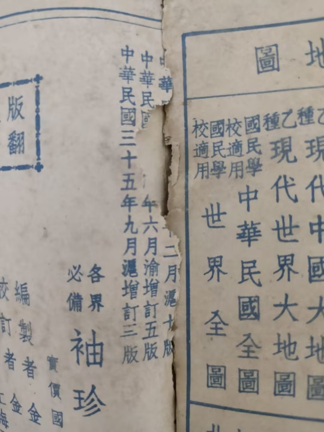 近来,从市场上淘来一本中华民国时期的地图册,里面有世界地图和中国地图,年代是1946年9月,反映了第二次世界大战结束以后的世界格局。