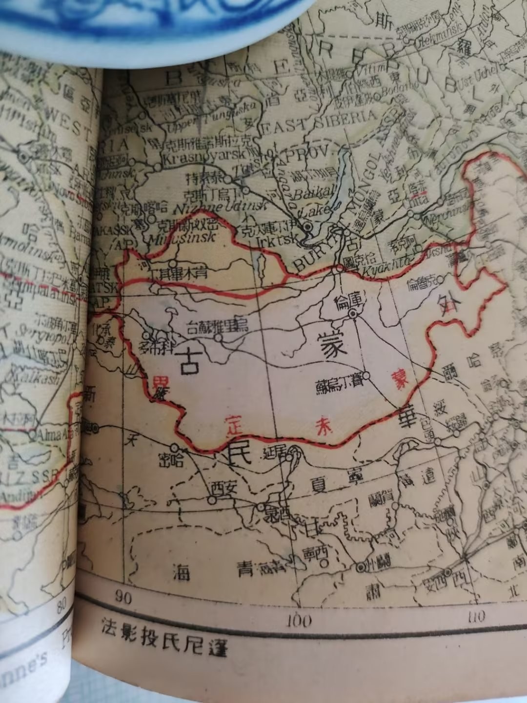(上图)1946年中华民国地图上显示外蒙古未定界的虚线。