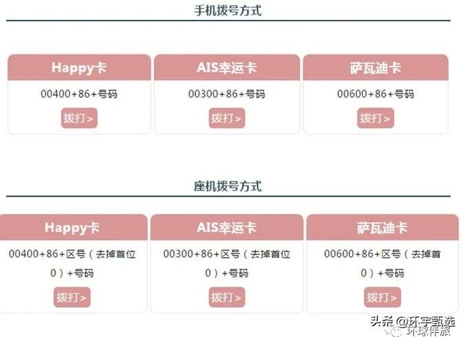 购买泰国运营商电话卡其实是最便宜省钱的方式,泰国共有三大通讯运营商,分别是AIS(泰国老大,相当于中国移动)、DTAC(泰国老二,在游客心中的地位最高)、True Move(泰国老三,相当于中国电信)。这三家运营商,又分别出了三种电话卡(幸运卡、happy卡、萨瓦迪卡)给游客。