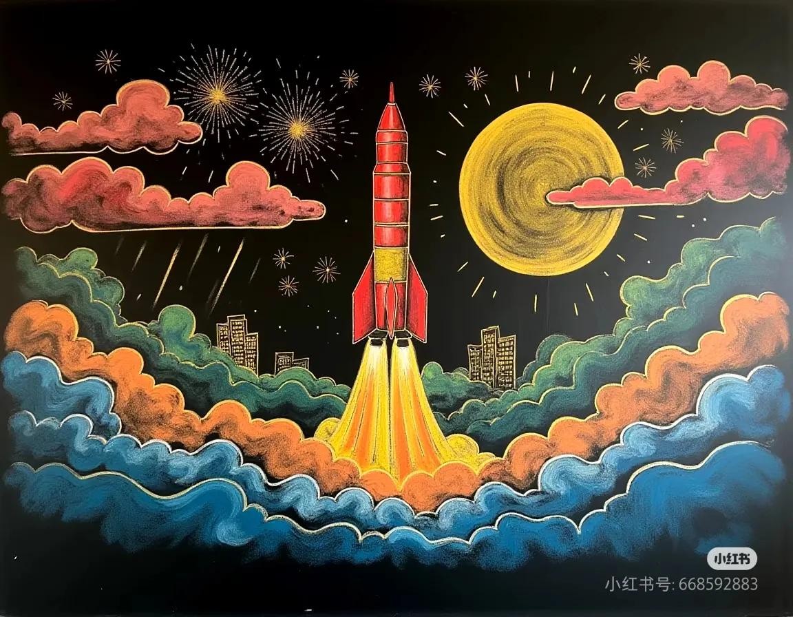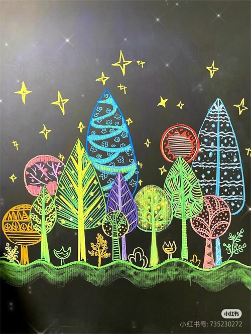 黑板画56幅分享欣赏,色彩艳丽配色超绝,内含步骤图!