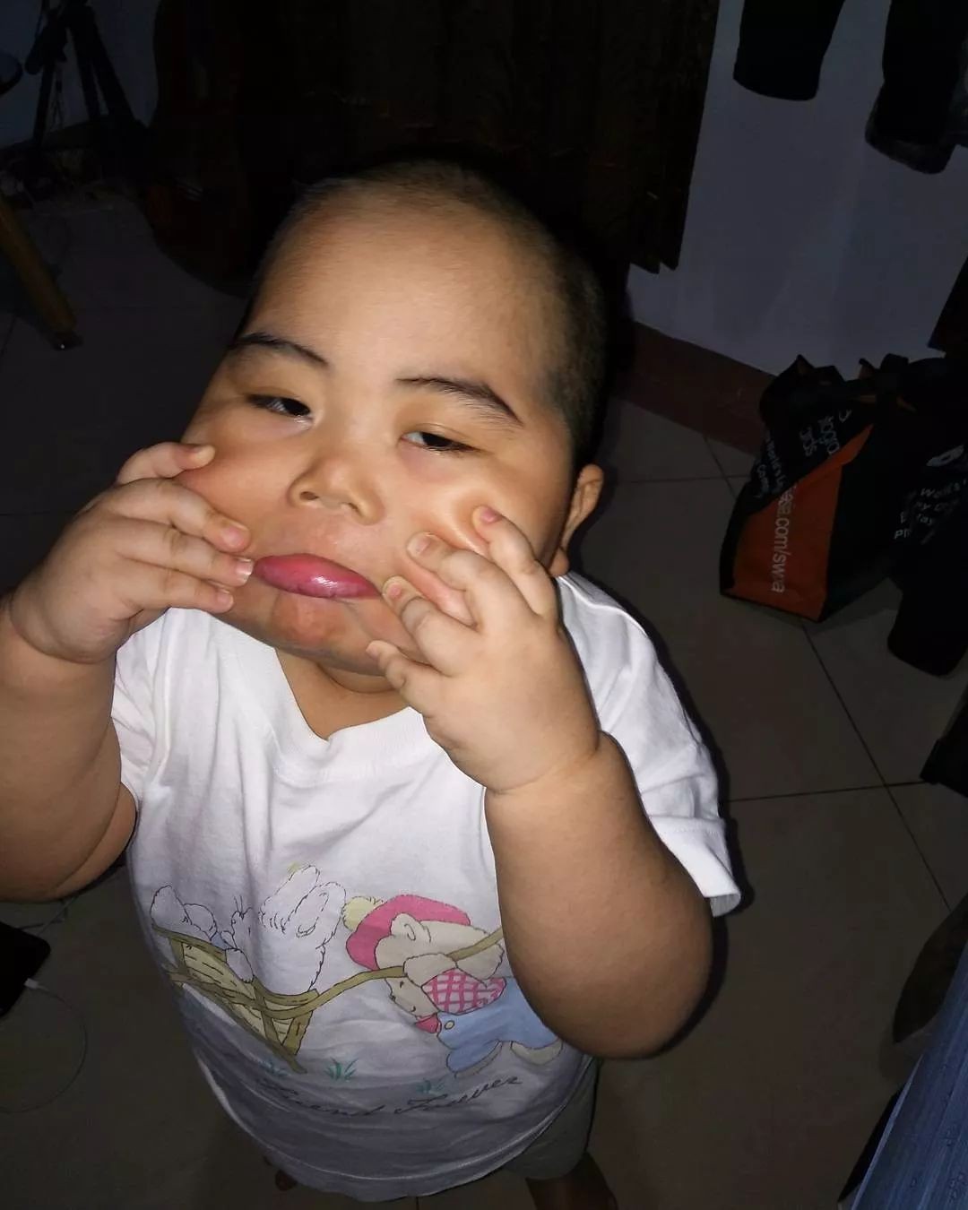 Tatan从小就很有肉感,表情丰富多变,每次都能把家人逗得哈哈大笑。