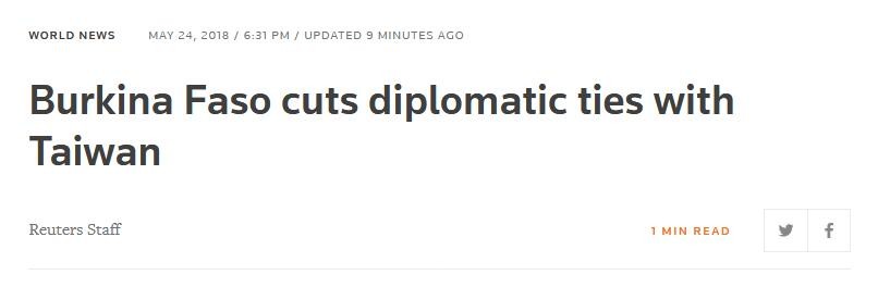 布基纳法索与台湾“断交”,“邦交国”还剩18个