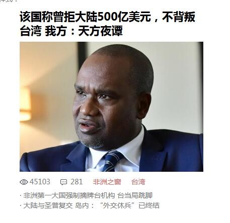 2017年1月,布基纳法索外长在接受媒体采访时,为凸显与台当局的“仗义之势”,还称拒绝大陆高达500亿美元的“金钱诱惑”,不会为了钱而背叛台湾。