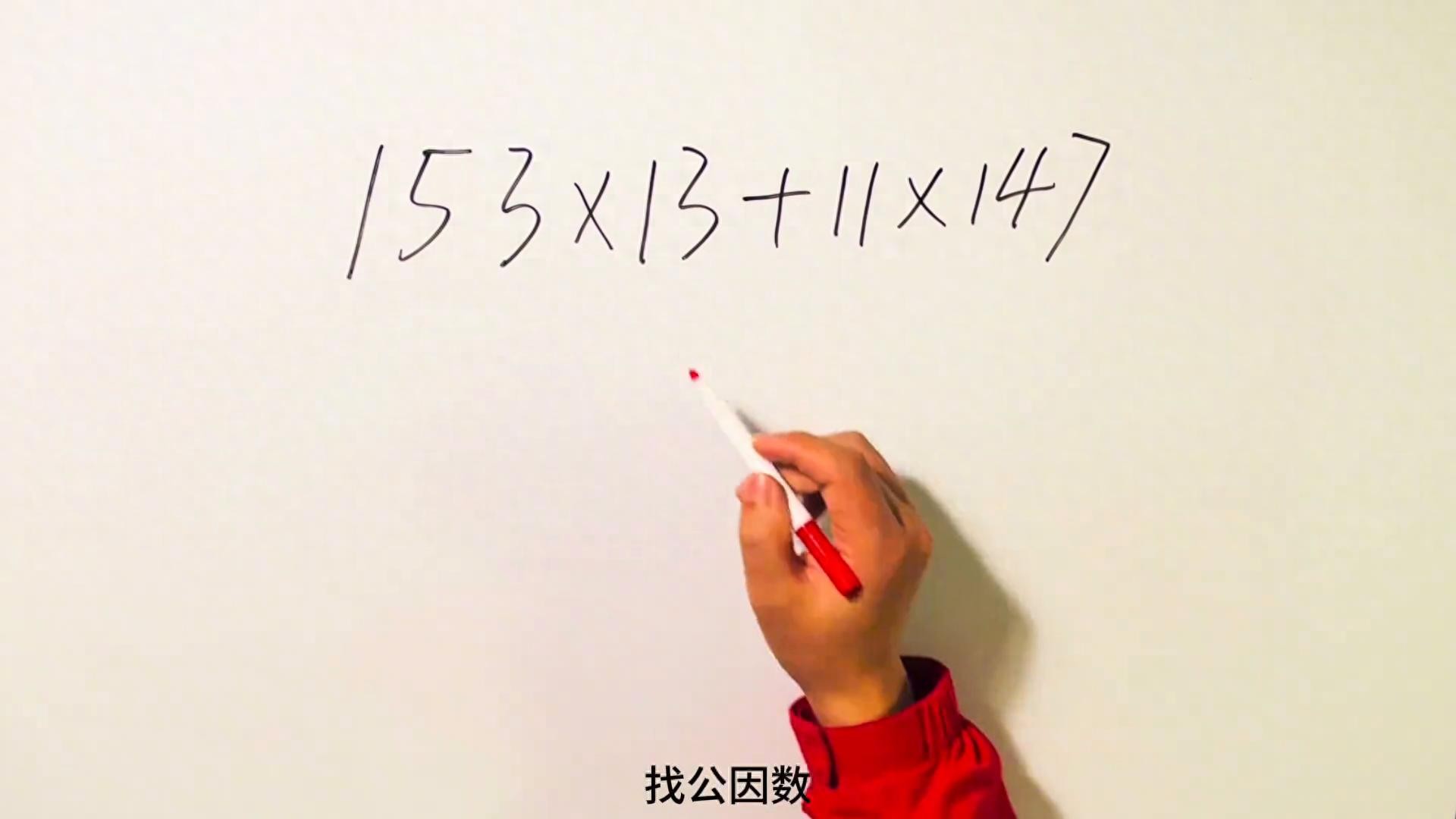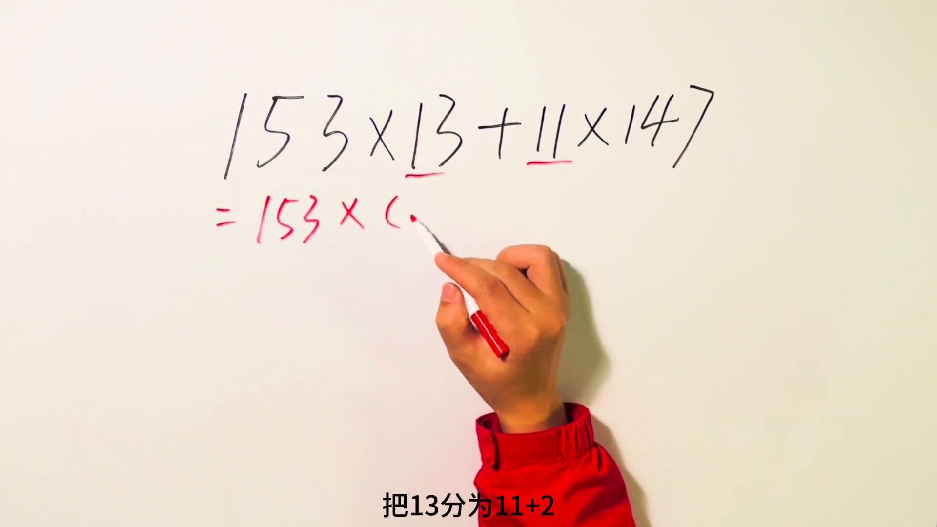 把十三分为十一加二,现在就等于一百五十三乘以十一加上一百五十三乘二,再加上后面的十一乘以一百四十七。