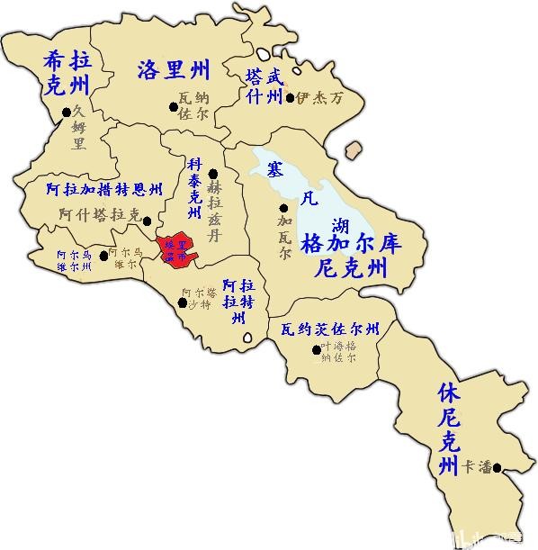 2.格加尔库尼克州:5349平方公里(含塞凡湖1360平方公里),首府:加瓦尔
