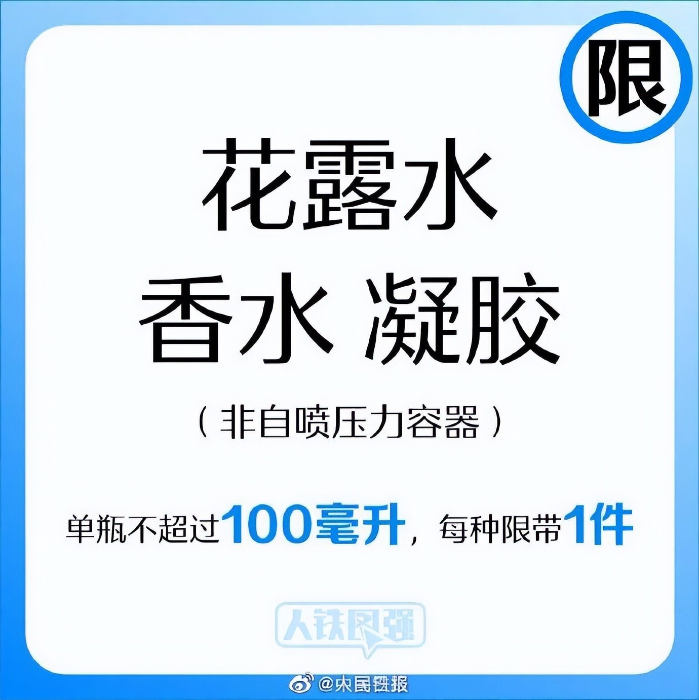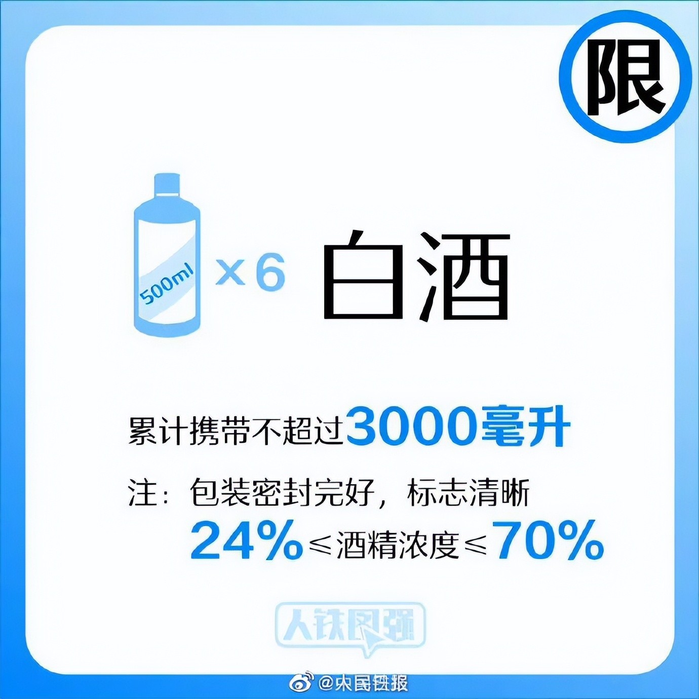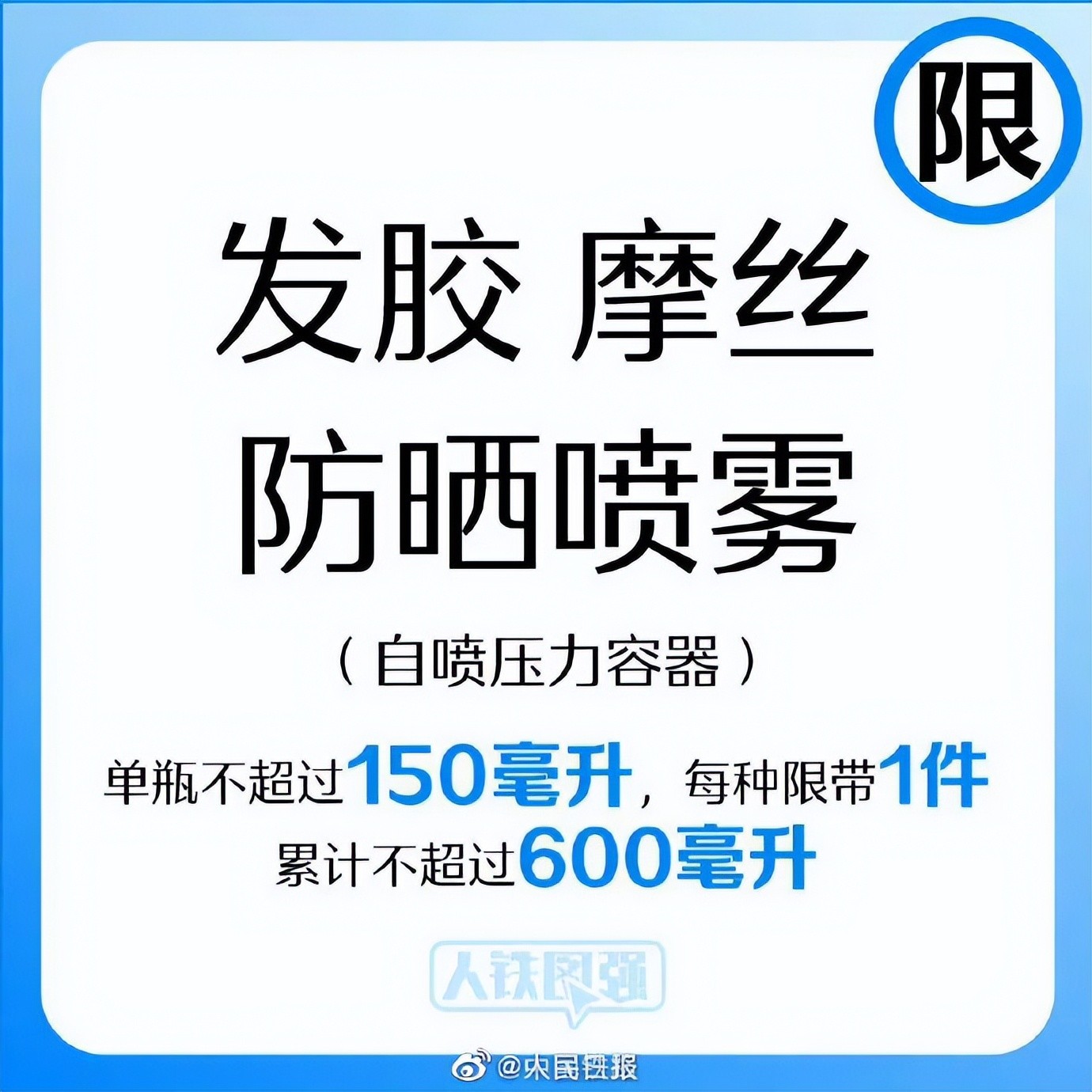选择铁路出行时,禁止或限制随身携带的物品有哪些?发胶摩丝、防晒喷雾、消毒湿巾、海鲜、白酒……这些可以带上车吗?国庆假期期间,收好这份#火车高铁限带物品清单#↓↓