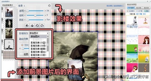 选择你想要的效果,单击“添加前景”添加你想拼贴的照片