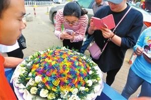 情人节深圳一花店现万元玫瑰 99朵七彩玫瑰组成