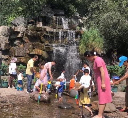 儿童活动区是一处沙坑,可以带上玩沙工具。走过飞虹桥就是荷花池,适合赏荷花拍照。坐在荷花池边很凉快。