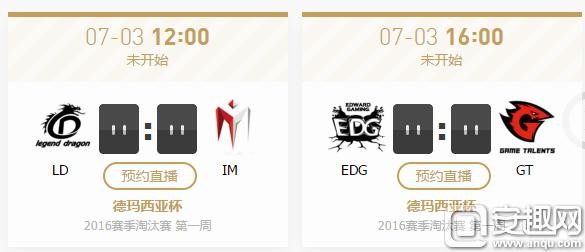 2016德玛西亚杯7月3日赛程