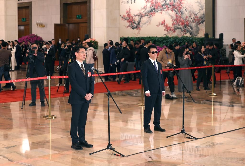 3月8日,第十四届全国人民代表大会第二次会议第二场“代表通道”集中采访活动在北京人民大会堂举行。这是全国人大代表王永澄接受媒体采访。