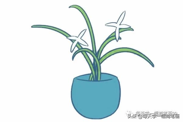 兰花简笔画分步骤画法是:画出狭长的花瓣,接着画出长长的花茎,画上花盆,填上相应的颜色。