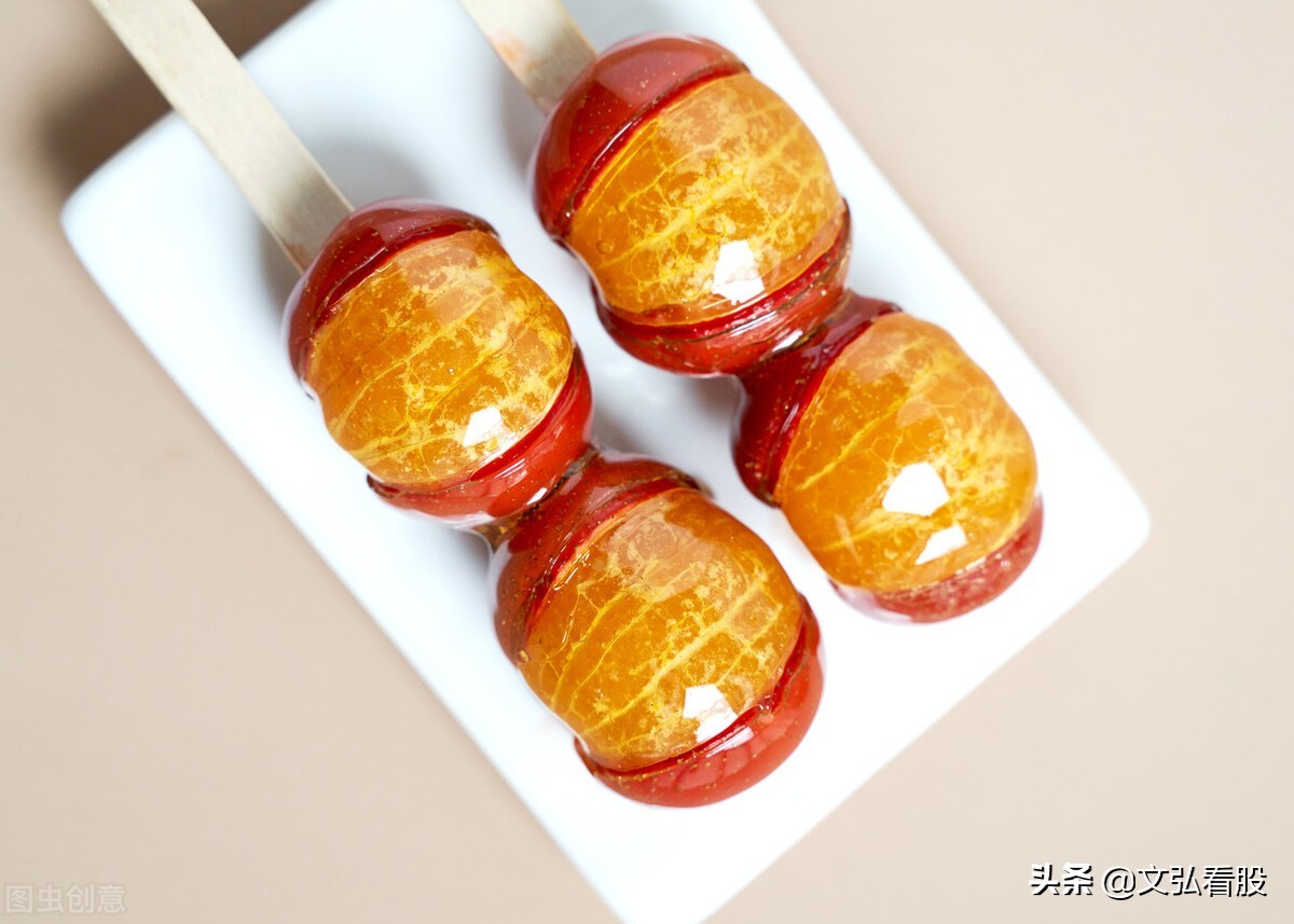 第五,准备一个苹果,将蘸好糖浆的糖葫芦插到上面去。如果你直接放到盘子里,等糖硬化后会沾到盘子上,拿起来比较费劲或者会粘掉很多糖。