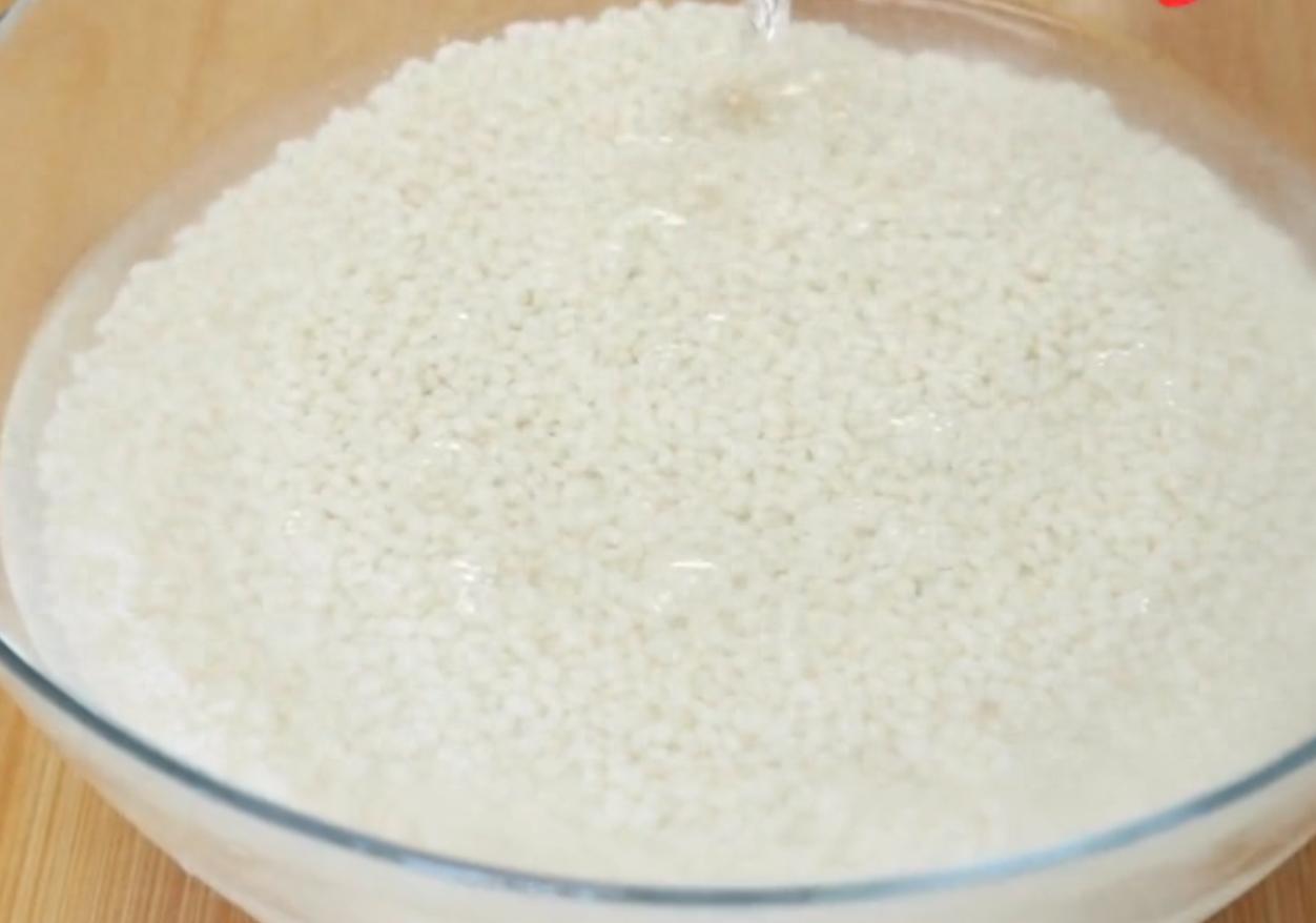 1,准备一斤糯米清洗干净放入电饭煲蒸熟(和正常焖米饭一样)