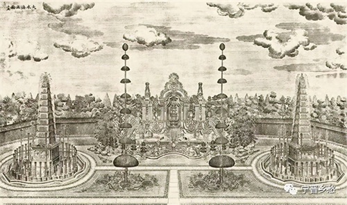 清末西洋铜版画——大水法。大水法、观水法景区位于海晏堂东,由大水法,观水法及后来添建的远瀛观组成,占地面积约1万平方米。1860年10月6日英法联军洗劫圆明园被毁。