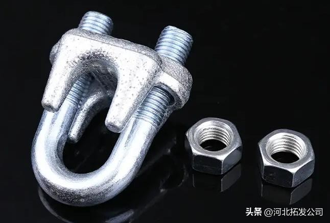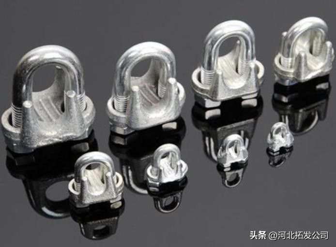 钢丝绳卡扣主要运用于镀锌钢丝绳的临时性连接和稳固,是起重吊装作业中用的较广的钢丝绳夹具,一般用的钢丝绳卡子,有骑马式、拳握式和压板式等。