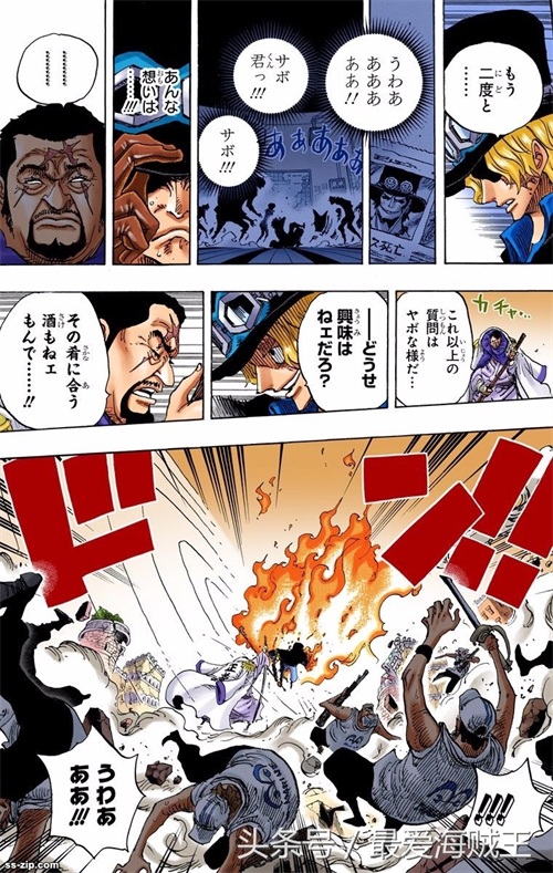 萨博VS藤虎发生在德雷斯罗萨,漫画版在两年前出的,动画版也已经出了一阵子了,不过彩色版你或许没有见过,来感受一下: