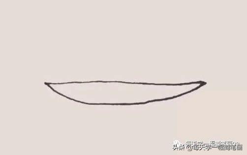 第二步:上面画上一条横线,两边分别弧下来一条弧线,注意越往下越窄,还要对称。