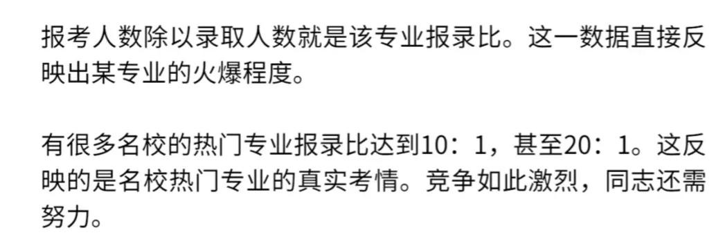 这一数据可以体现报考专业的热度以及竞争力度的大小,但这一数据只有部分学校才公布。