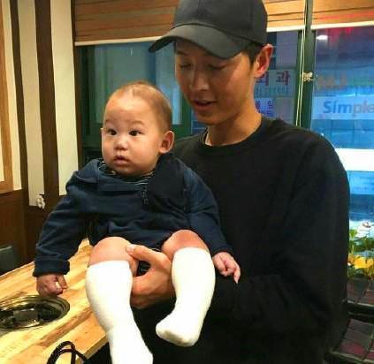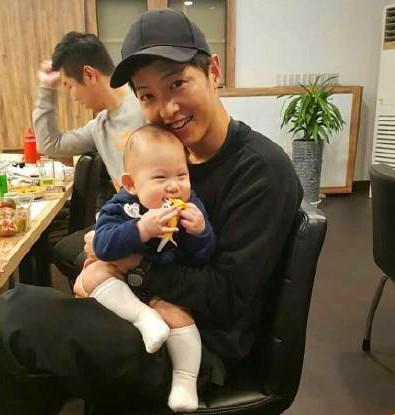 宋仲基抱娃引围观,网友:玩人家的没意思,自力更生嘛!