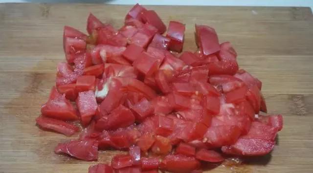 1、将西红柿切成小块,小葱切碎,大蒜切片,鸡蛋搅散,待用。