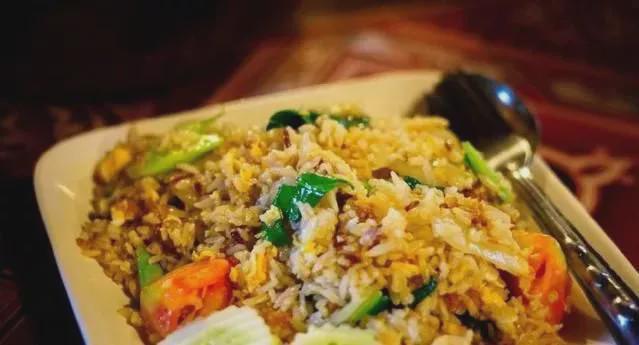 3、锅中倒入油,下入葱花爆香,然后倒入米饭翻炒,炒至粒粒分明。