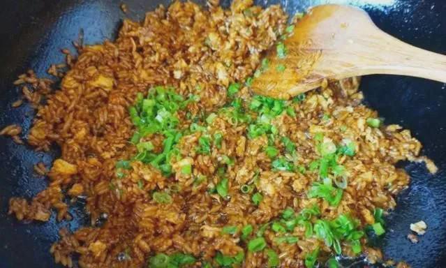 【食材】:米饭1碗、鸡蛋2颗、小葱3根、酱油1勺、红烧肉酱油适量。步骤如下: