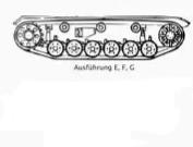 E型首次采用了费迪南德·保时捷公司在1930年为汽车工业所设计的扭杆悬挂装置,成功地解决了困扰III号坦克的行走问题。这种扭杆式悬挂系统作为一种成功的设计在以后型号中得到了广泛使用。E型有6对负重轮和3对拖带轮,装甲加厚至30mm,车体侧面配备了逃生舱口,新的炮塔增加了观察窗,并且配备了更好的遮阳板。