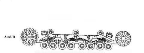 D 型使用倾角叶片式弹簧。A、B、C 三型是使用单体鼓型绰号“垃圾箱”的指挥塔,D 型则是和IV号B 型坦克一样的铸造指挥塔。D型发动机舱两侧的进气口是朝下方的,并且D型的尾部更大。