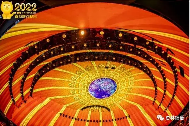 晚会舞美设计首次以高科技打造了720度环幕空间,让球形舞台与一号演播厅整合为具有无限延展效果的立体“同心圆”,台上台下浑然一体,立体感显著、视觉冲击力强、效果震撼。实现与观众席多维度、多角度的融合统一 [11] 。晚会通过精心设计将舞台延伸到演播厅整体,让观众也置身于表演空间,成为节目的有机组成部分,烘托出浓浓的“团圆、团聚、团结”的中国年氛围。