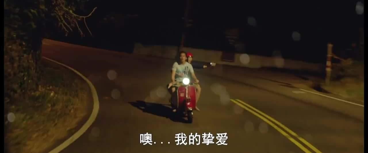男女主人公骑着摩托车用DV记录浪漫亲吻,谁知撞到了树上......