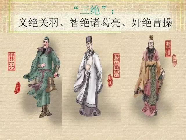 所以说呢,这三个人,曹操就被称为“奸绝”,关羽被称为“义绝”,诸葛亮被称为“智绝”,大家一定要记住《三国演义》里的“三绝”。我们以后的课程还会重点地对这三个人物、跟他们有关的一些故事情节再给大家讲解一下。