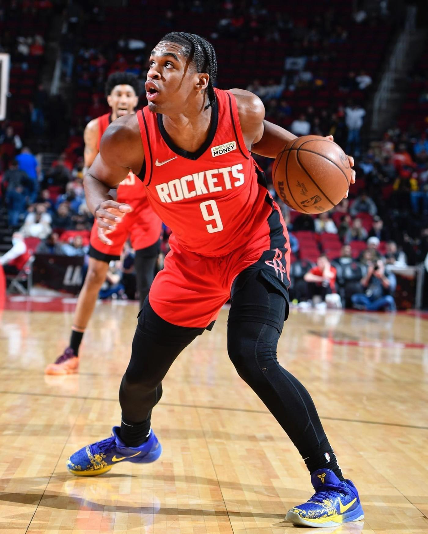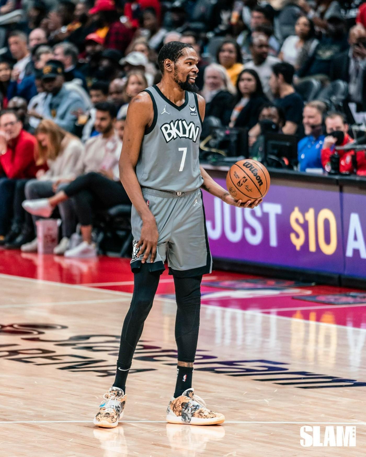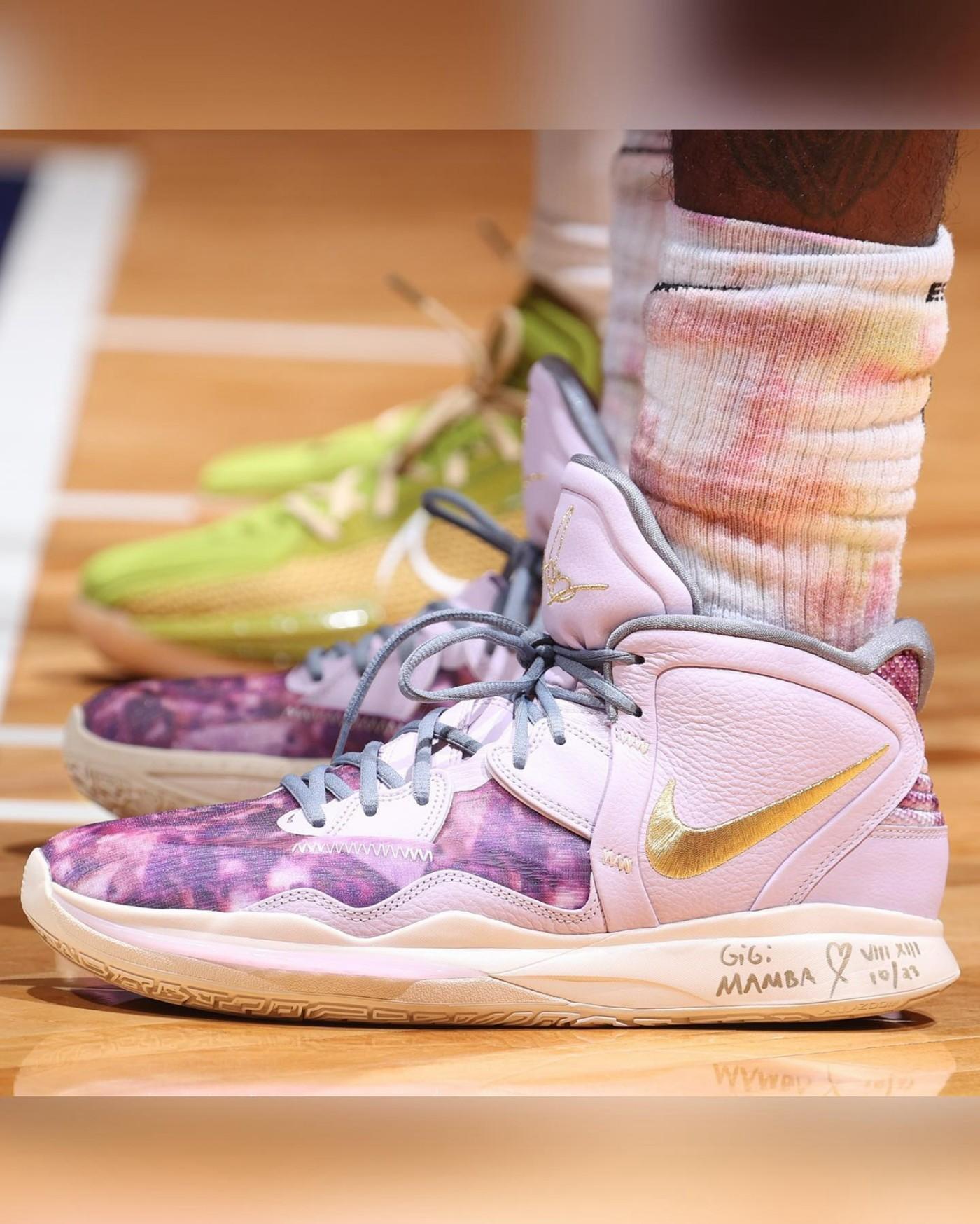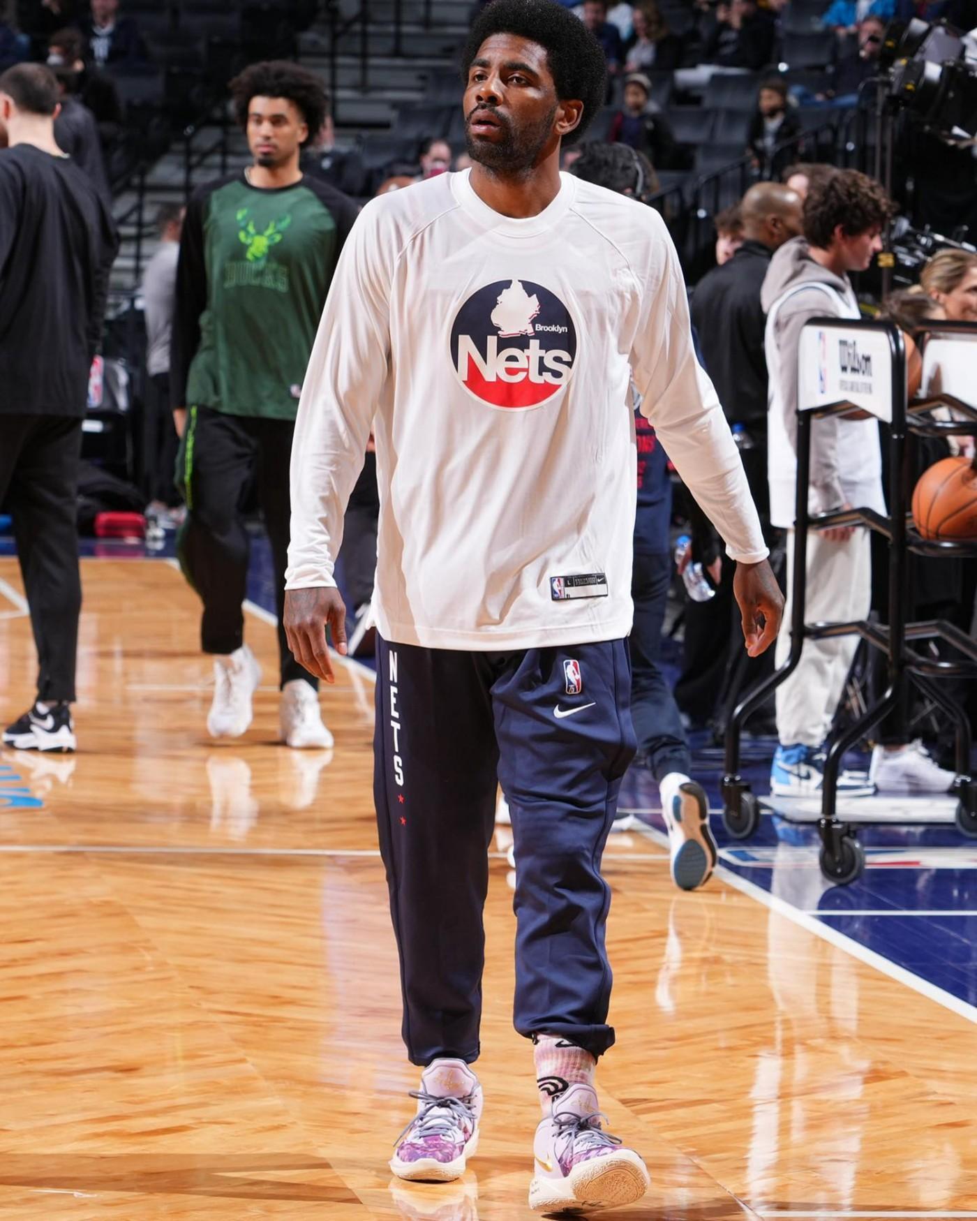 不清楚欧文此次上脚的这双,是否会成为欧文8的首发配色。蓝迷彩的搭配看起来是要比最初曝光的黑红好接受一些。