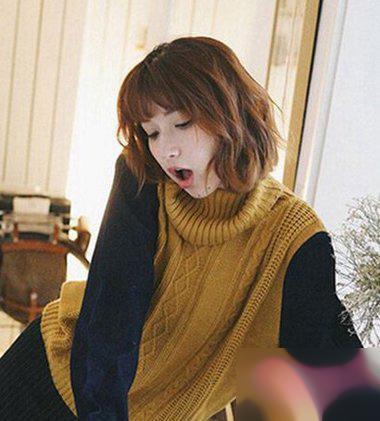 女生前梳短发蘑菇头烫发尾发型