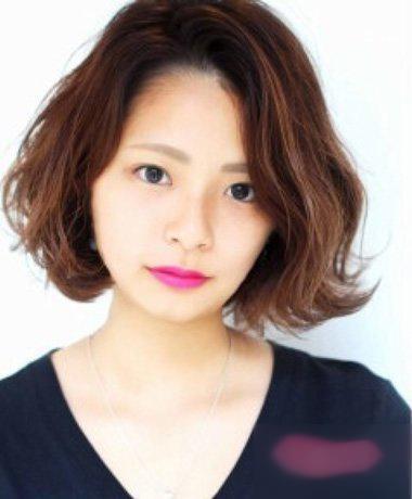 大脸女生空气刘海烫短发发型