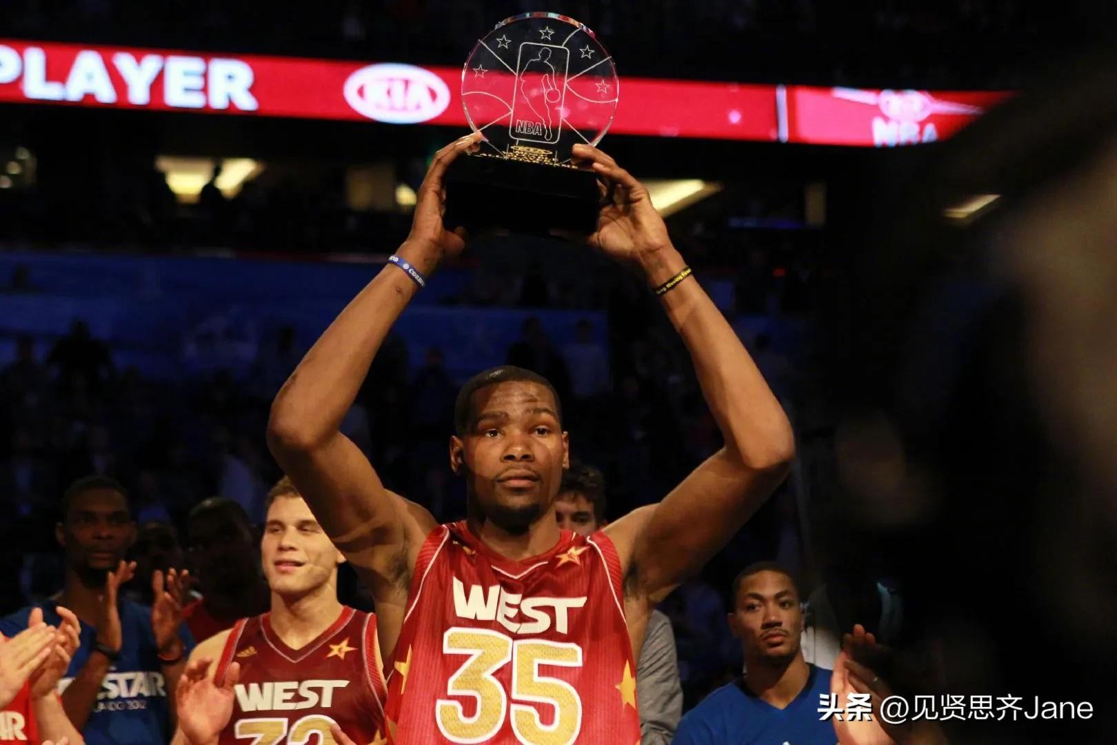 2012年NBA全明星赛,西部152-149东部,MVP获得者凯文-杜兰特。 凯文-杜兰特:36分7篮板3助攻。