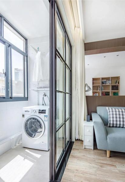 这是做了推拉门的效果,正如上边所说,空间分割比较明确,客厅和阳台完全隔开。涉及的隐私就是阳台上如果晾晒有衣物,在有客人来的时候能起到遮挡的作用。
