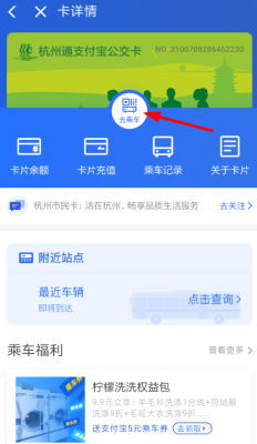 2、紧接着在卡详情页面里点击“去乘车”选项,大家就可以唤起二维码然后通过扫描直接付款,非常方便快捷!