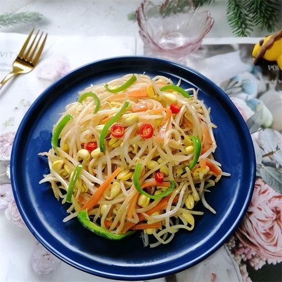 清炒黄豆芽是一道简单、健康、美味的家常菜肴,