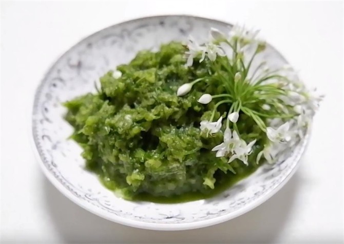 7.这样好吃的韭菜花就做好了,500克的韭菜花加入80克的食盐,做好之后也不是太咸,加入了苹果或者梨之后,中和了韭菜花的辣味,吃火锅的时候非常给力,喜欢吃韭菜花的朋友,可以在家这样做尝试一下。