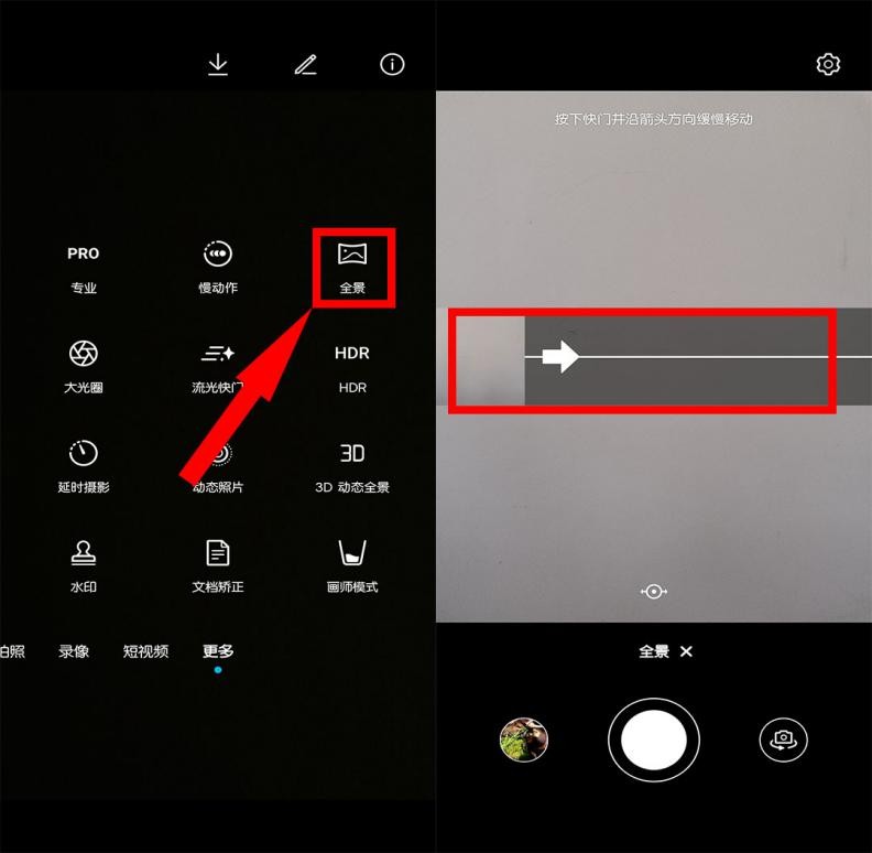 开启步骤:相机—更多—全景