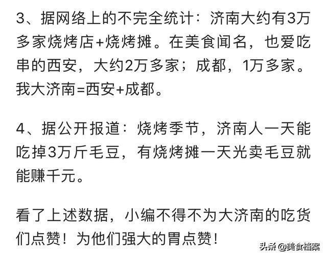 济南烧烤店林立,一年四季经久不衰,虽然经过“创卫”和“拆违”的双重洗礼,路边摊露天烧烤转室内,使济南烧烤元气大伤,但很多老品牌依然屹立不倒。回顾一下济南烧烤辉煌的历史数据: