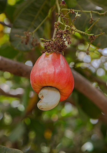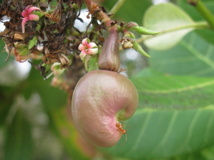 腰果是先长出果实(nuts),等果实长大之后,开始长果实上方的果子(Cashew Apples)。