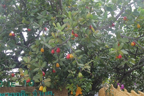 【3】腰果长大后,它上方的Cashew apples才开始生长,会长的比腰果还打,而且颜色鲜艳,让人觉得它才是猪脚!