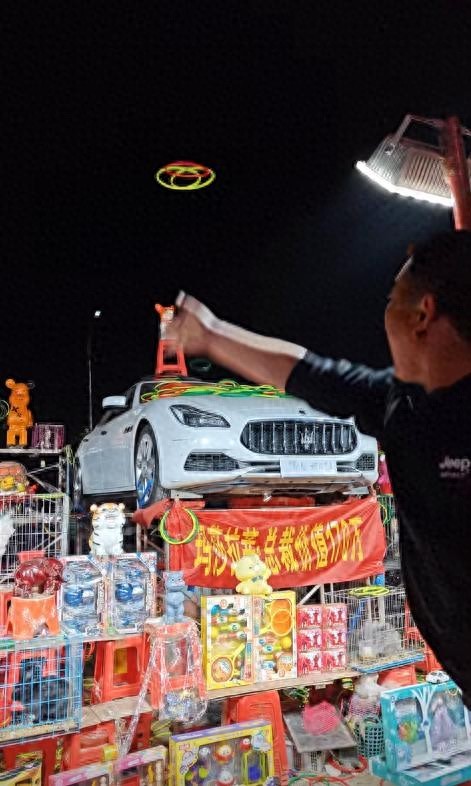 河南商丘柘城县一老板将一辆二手的玛莎拉蒂总裁车辆作为套圈奖品,称套中车上摆件三次可获得一年使用权。