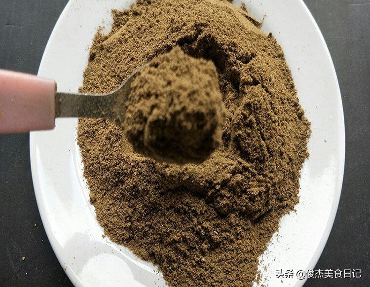2:香料粉的制作方法,八角十克,小茴香十克,花椒十克,山奈十五克,麻椒十五克,白芷十五克,草果十克,肉蔻十克,白寇五克,香菜籽五克,丁香五克,香叶十克,桂皮十克,良姜十克,砂仁十克,干香菇十克,白胡椒十克,配好的香料要想发挥到极致,就需要特殊的手法来操作,把香料泡水去除杂质,在锅内小火炒出香味,然后打成粉就可以了,这就是你为什么有了配方,也做不出那个味道,具体的细节也很重要,其实一点就破。