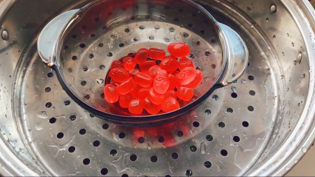1、QQ糖倒入碗中,放入蒸锅加热融化成液体。