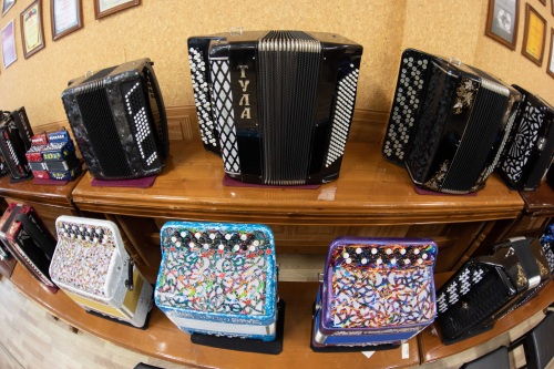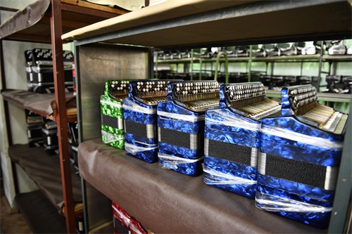 这是6月7日在俄罗斯图拉拍摄的等待试音的巴扬手风琴。 新华社记者 白雪骐 摄