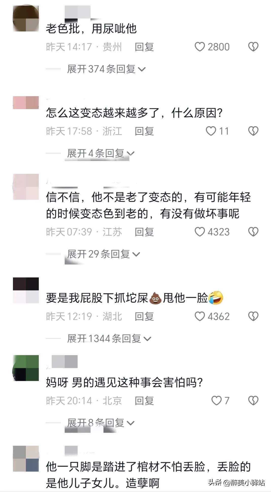 在这件事上网友们观点一致,炮轰老大爷是个变态老色批